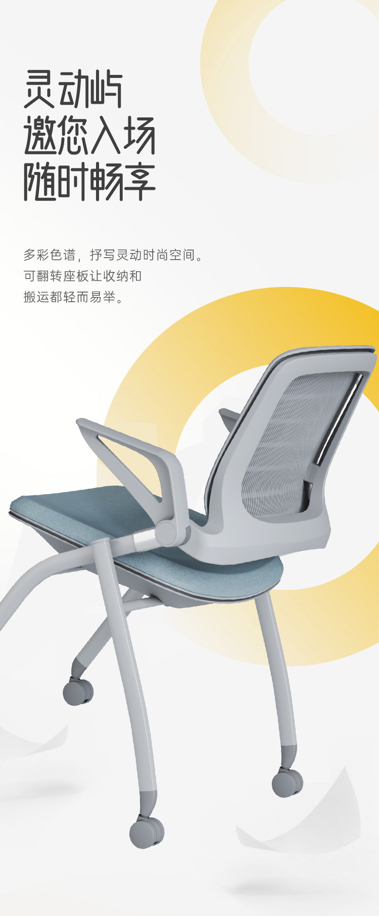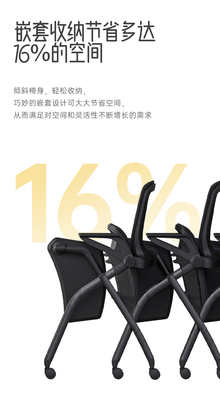 倾斜椅身,轻松收纳,巧妙的嵌套设计可大大节省空间,从而满足对空间和灵活性不断增长的需求。