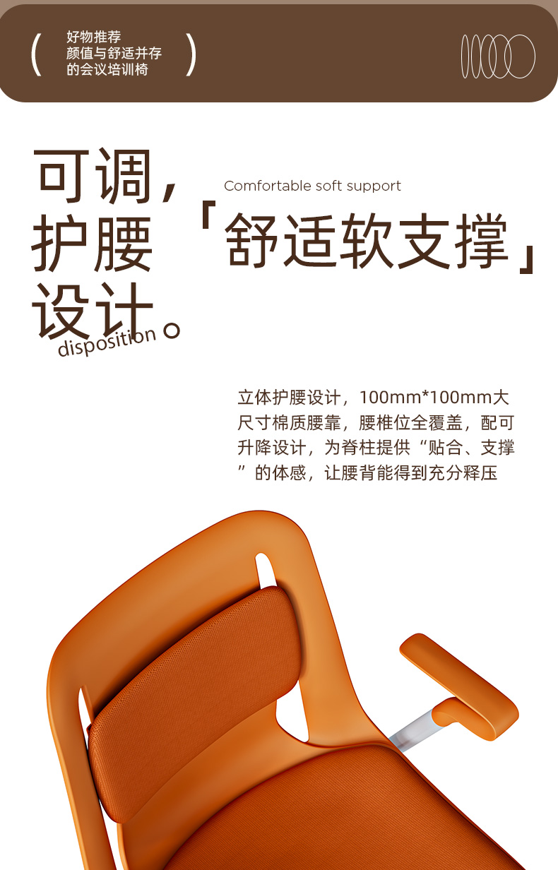 立体护腰设计,100mm*100mm 大尺寸棉质腰靠,腰椎位全覆盖,配可升降设计,为脊柱提供“贴合、支撑”的体感,让腰背能得到充分释压。